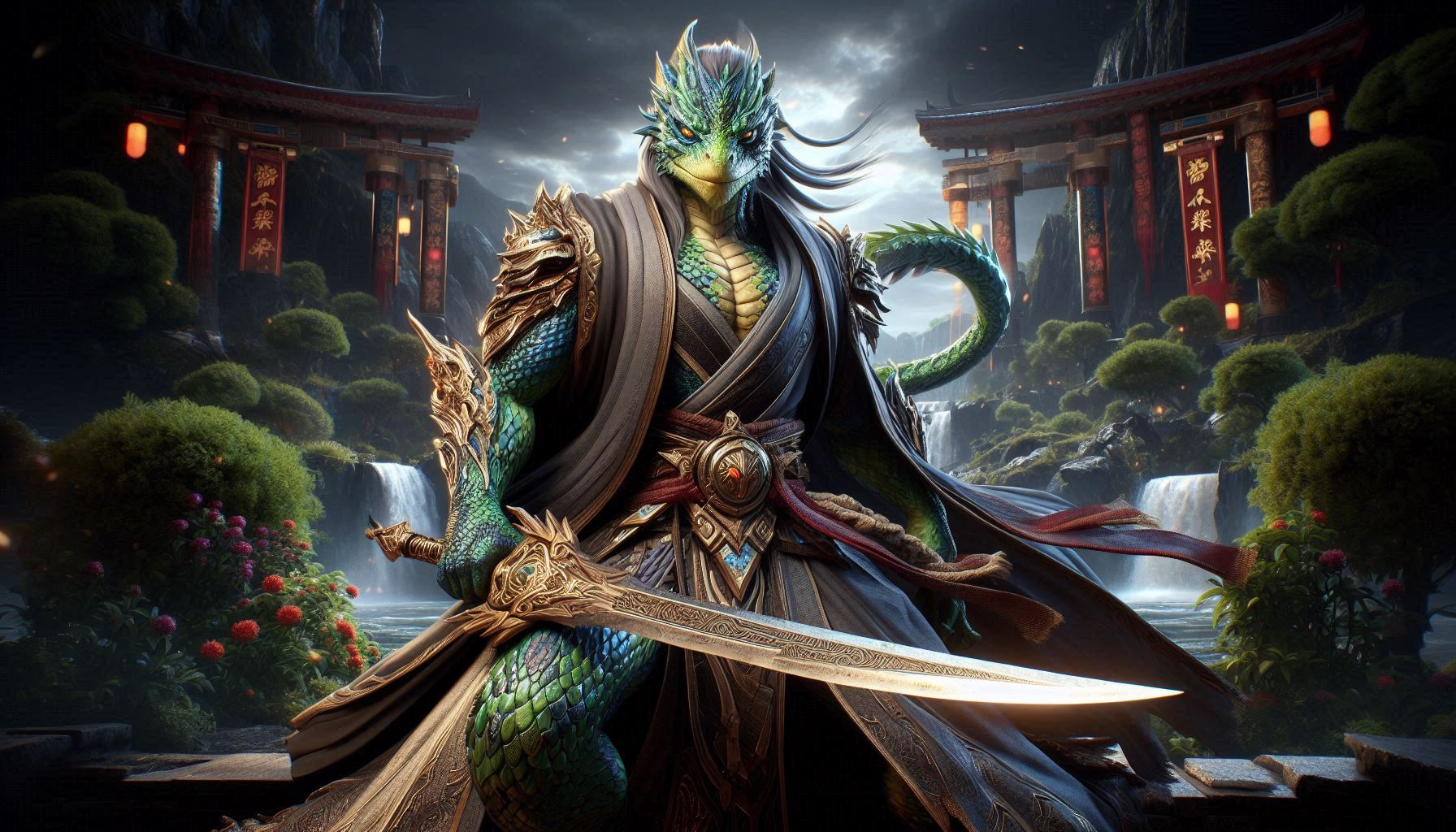 Puis de voir tout le lézard apparaître devant lui avant que les planches ne se mettent à couler. Ce dernier continua à siffler et grogner une langue incompréhensible tout en léchant bestialement sa lame pour justifier de ses intentions meurtrières à l’encontre de l’humain.